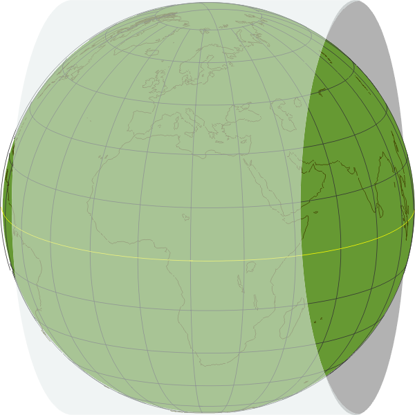 the yellow semi-circle (the illustration shows it in the 0°–15°E